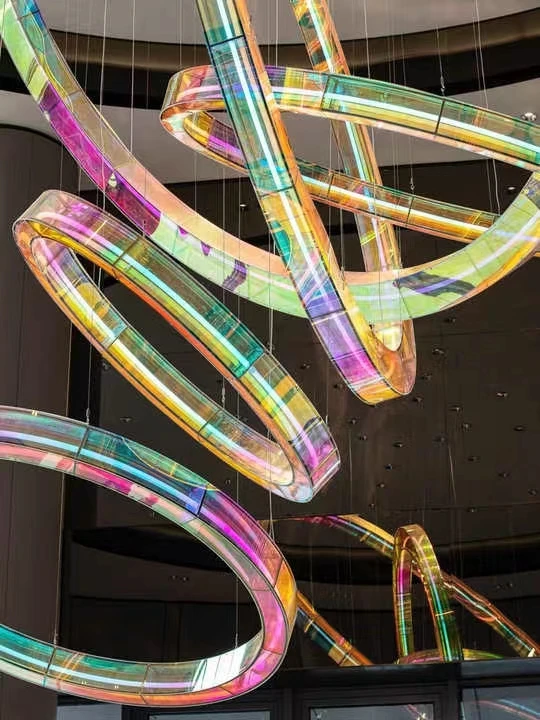 A bold fusion of color and contemporary design, this Custom Build Postmodern Round Chandelier is created for shopping malls, high-ceiling villas, and statement commercial interiors. The expansive circular form combined with vibrant acrylic detailing delivers a striking architectural presence while maintaining refined elegance. Designed for large-scale spaces, each chandelier is crafted to order with fully customizable dimensions, color compositions, finishes, and lighting configurations to align with your project vision.