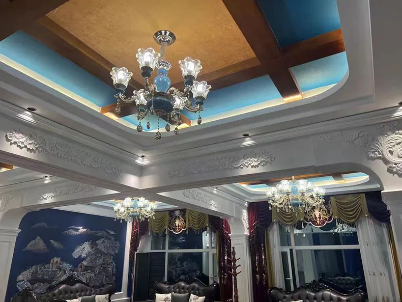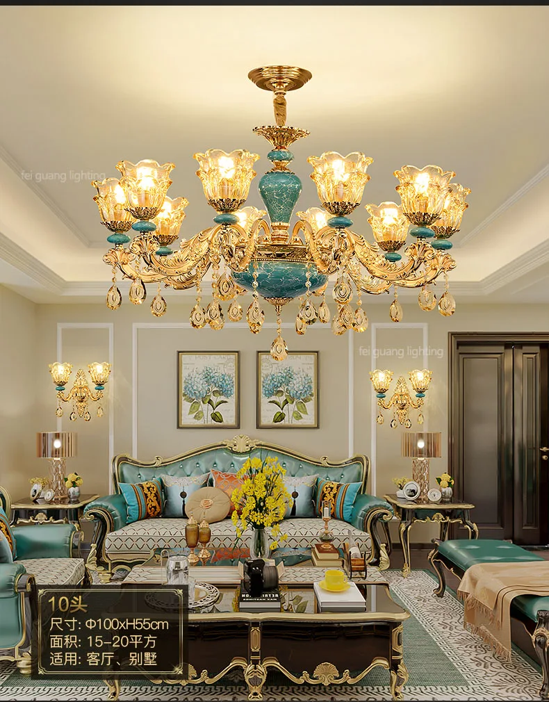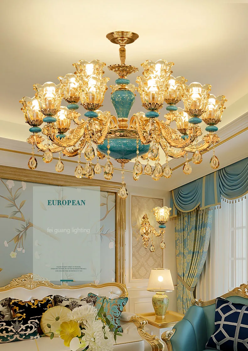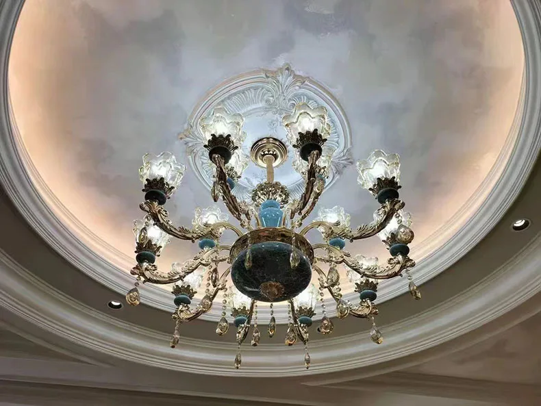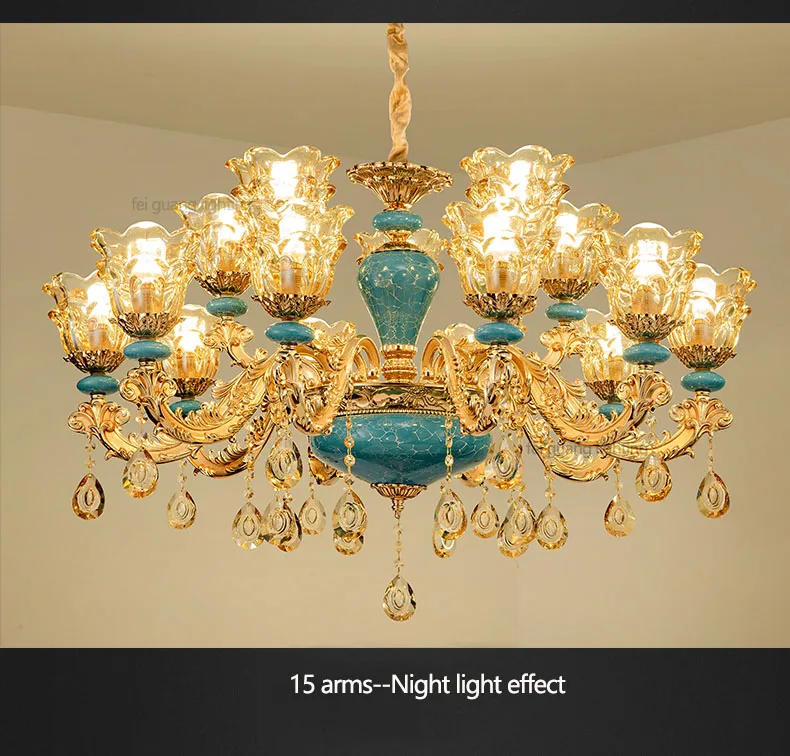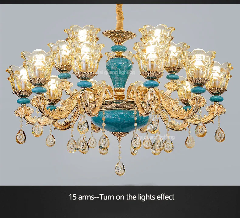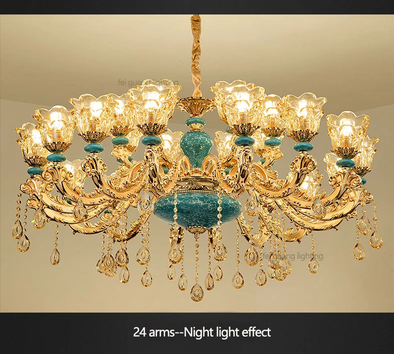 The champagne-colored chandelier looks very elegant, like real crystal. The seller packs all the chandelier parts very well. I have ordered chandeliers from this seller 5 times and everything has always arrived intact. I am very satisfied with the purchase, especially the price!