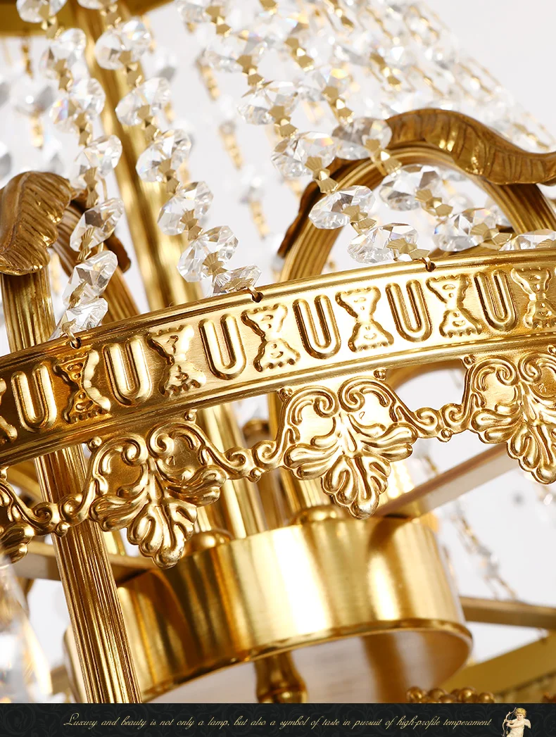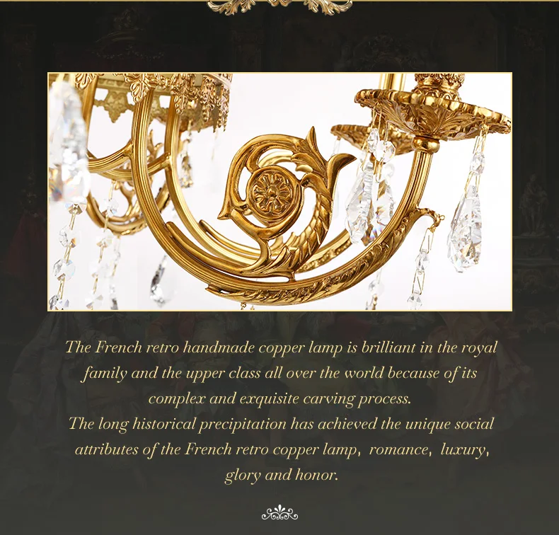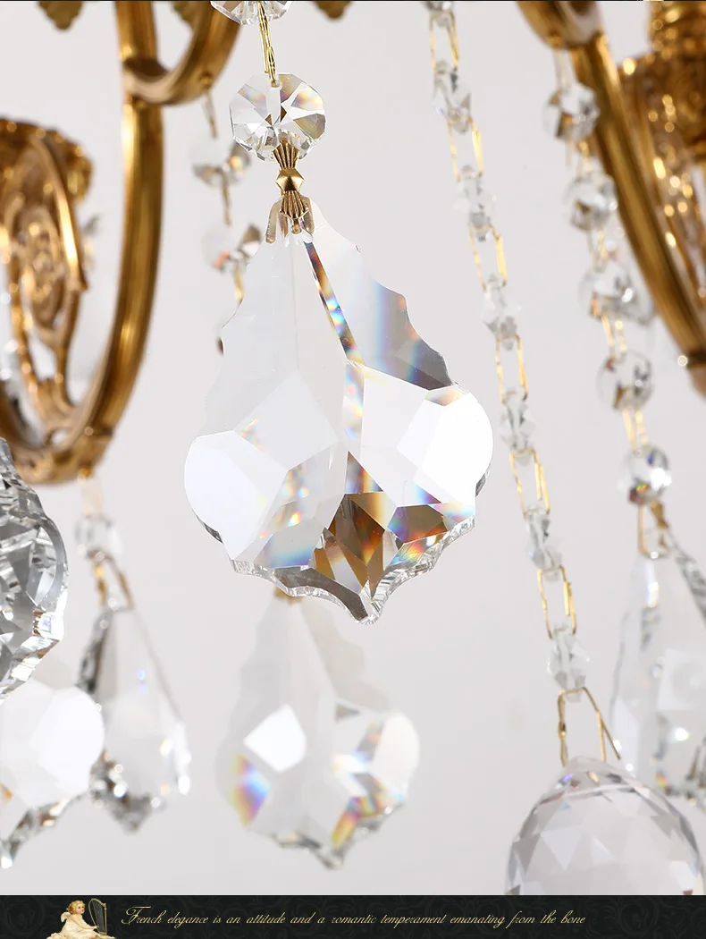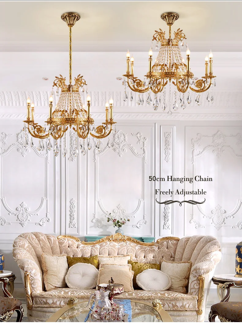 Blending French elegance with vintage-inspired detailing, this crystal bronze chandelier enhances interiors with refined character and luminous charm. Crafted from durable iron with a bronze-toned finish, it features clear glass shades and crystal accents that beautifully diffuse upward light. Designed for villas, foyers, and living spaces, this flush mount chandelier delivers a sophisticated decorative presence while maintaining practical illumination.