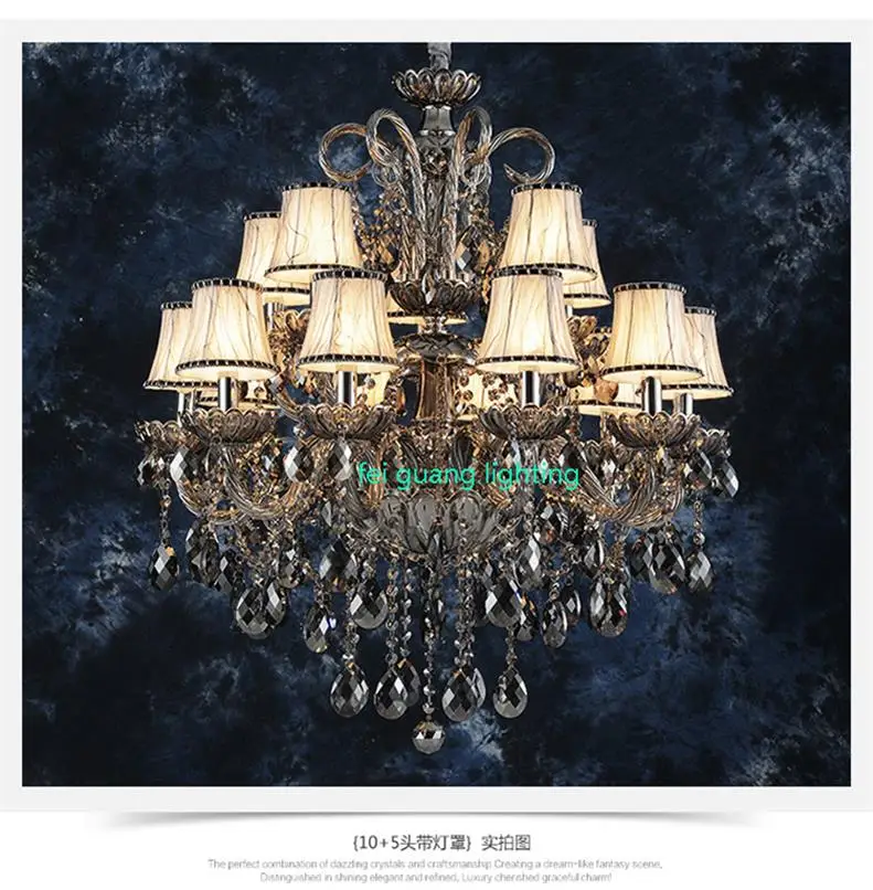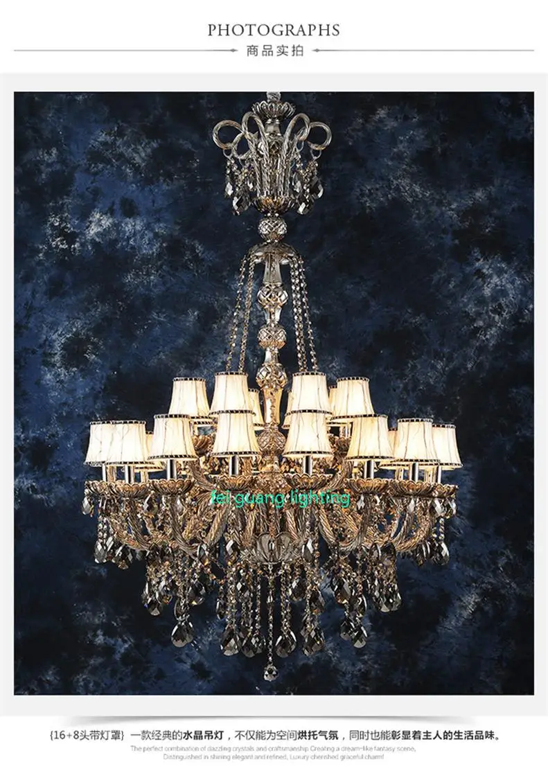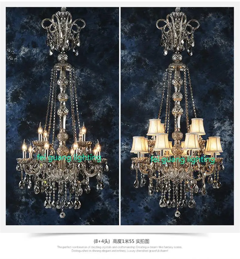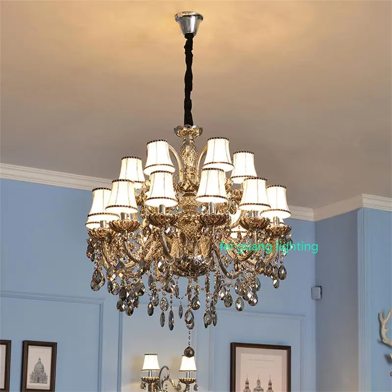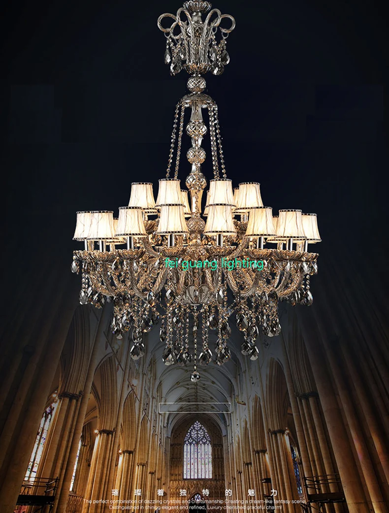 Dieser große Kristalllüster wurde für repräsentative Innenräume entworfen, in denen die luxuriöse Deckenbeleuchtung im Mittelpunkt steht. Mit seiner polierten Oberfläche, der eleganten Kristallkonstruktion und dem Stoffschirm erzeugt er eine erstklassige Lichtwirkung, die sich ideal für Maisonette-Wohnungen, Wohnbereiche in Villen und Hotellobbys mit hohen Decken eignet.
