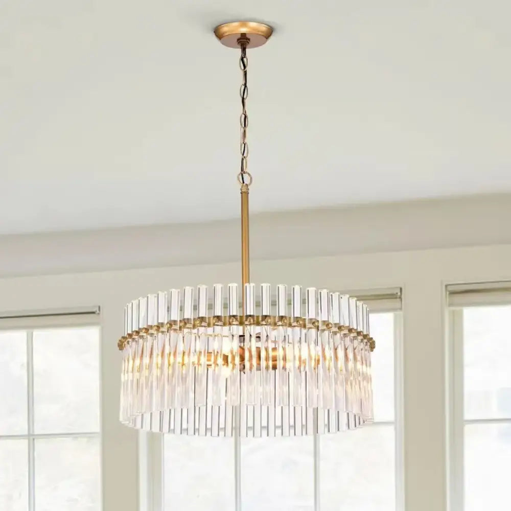 • Elegantes Kristallglas-Design: Werten Sie Ihre Einrichtung mit diesem stilvollen Kronleuchter auf, dessen Kristallglaszylinder moderne Eleganz ausstrahlen.