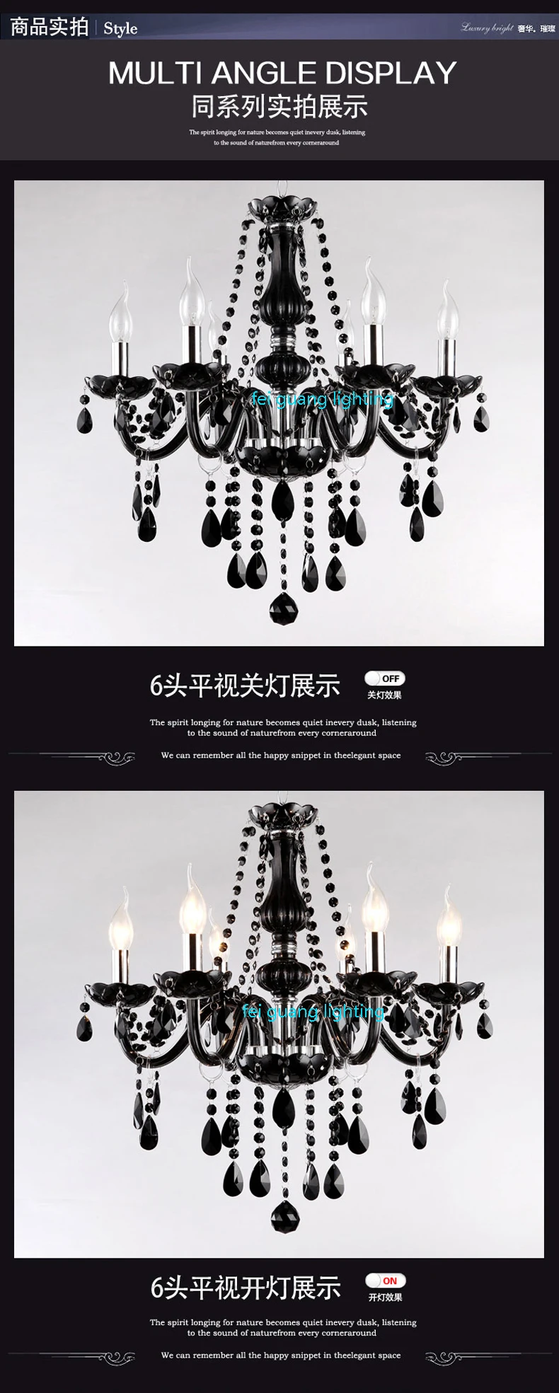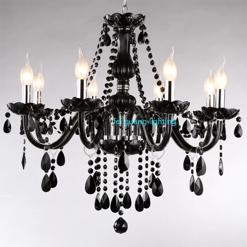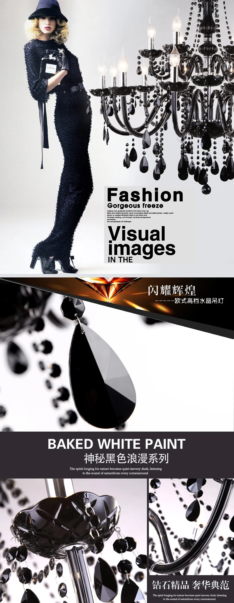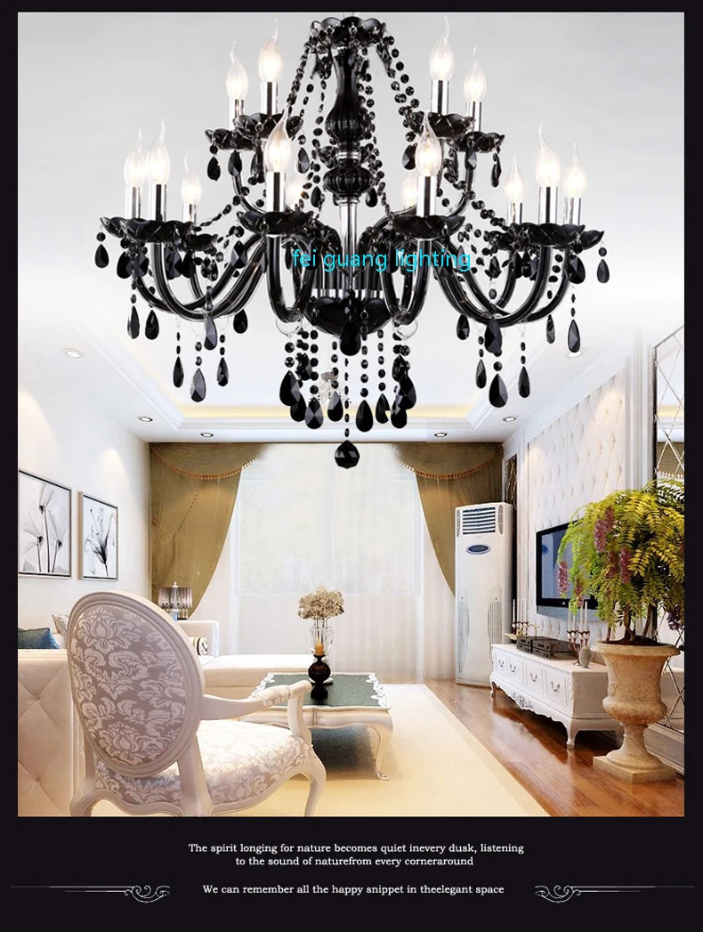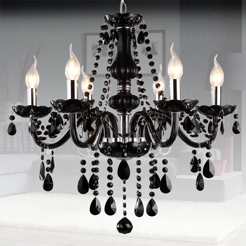 Schwarzer Kristall-Kronleuchter mit Kerzen für Schlafzimmer- und Restaurantbeleuchtung