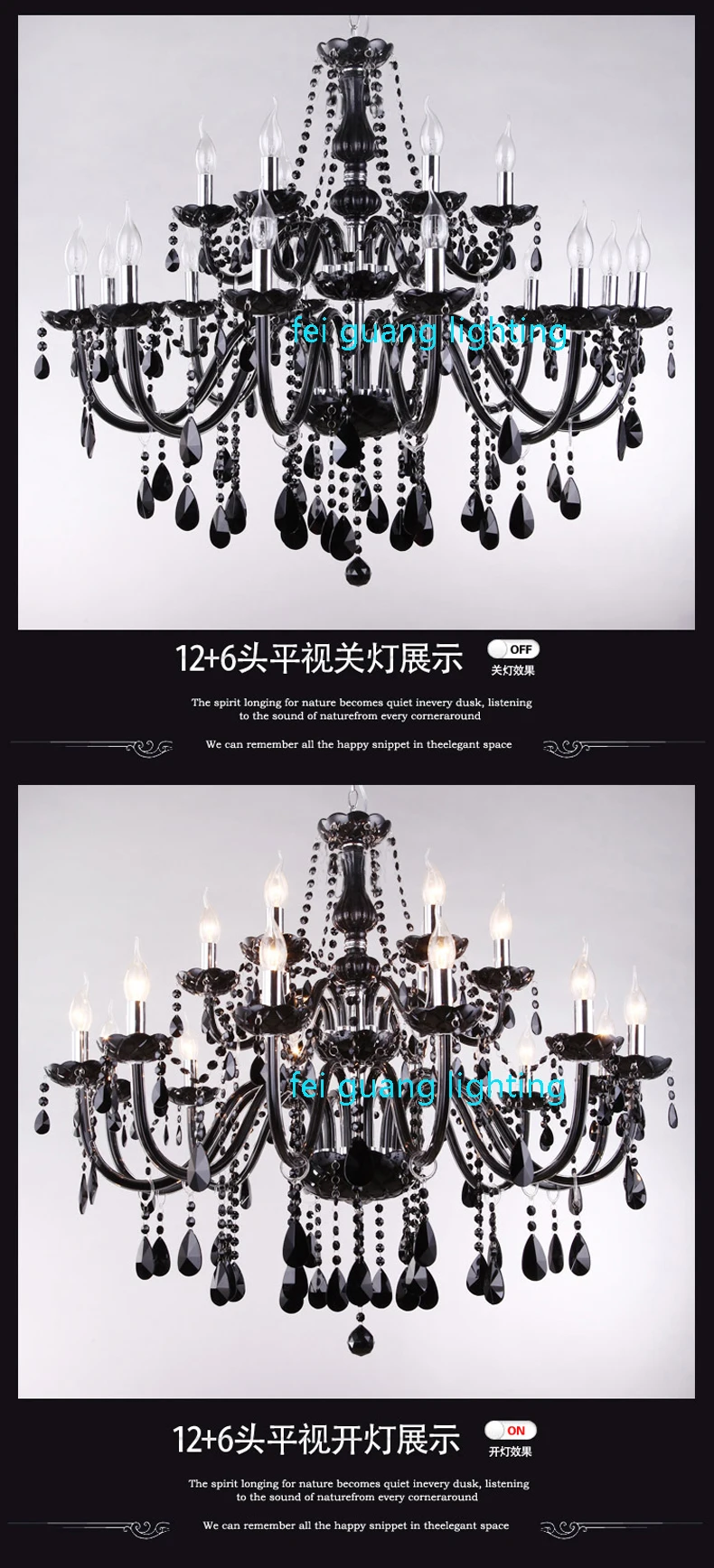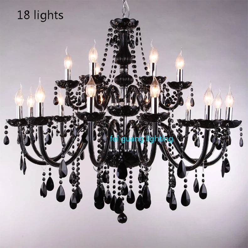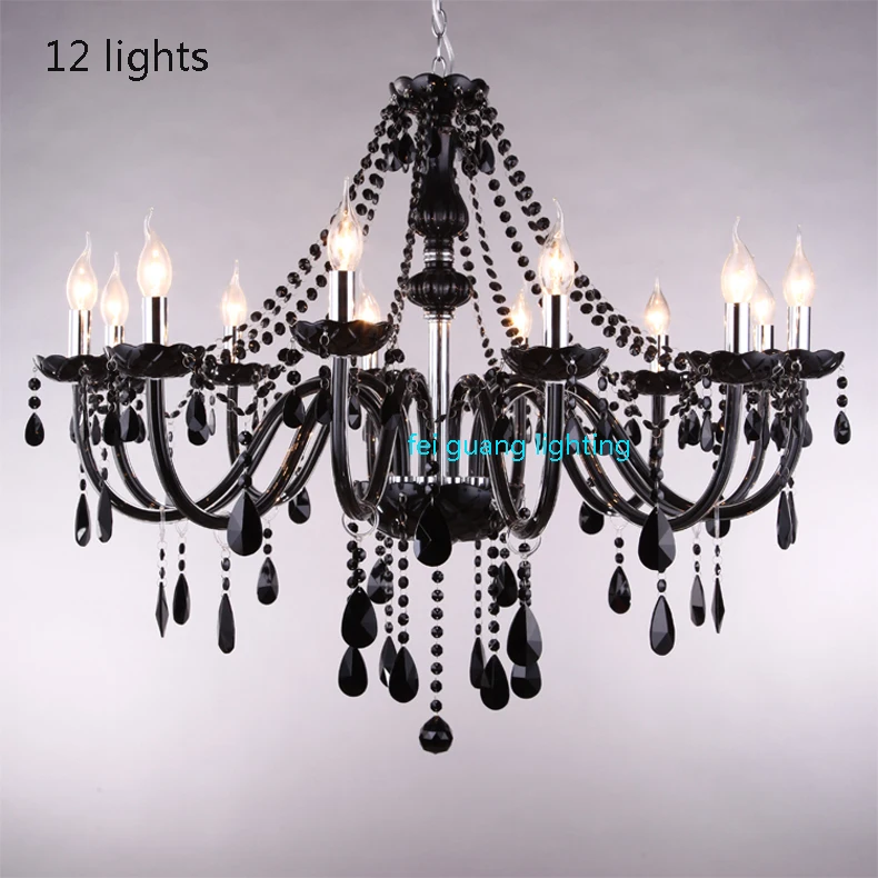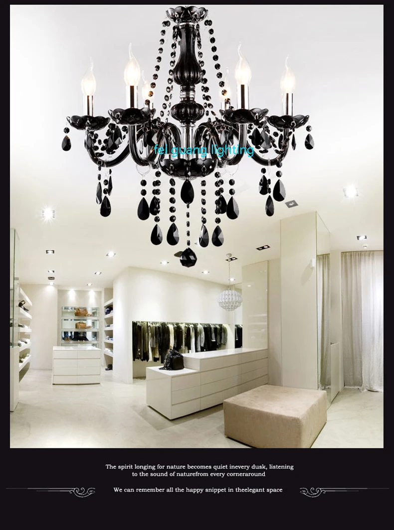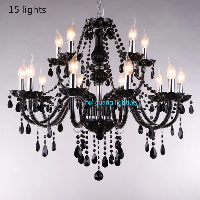Schwarzer Kristall-Kronleuchter mit Kerzen für Schlafzimmer- und Restaurantbeleuchtung