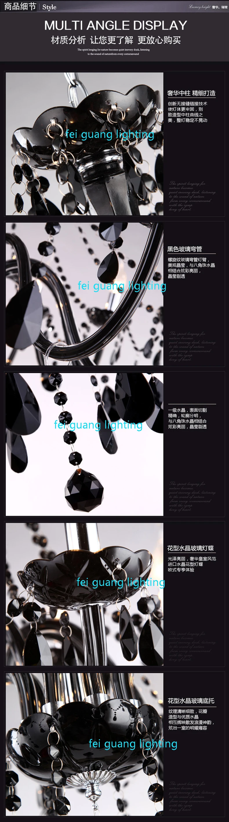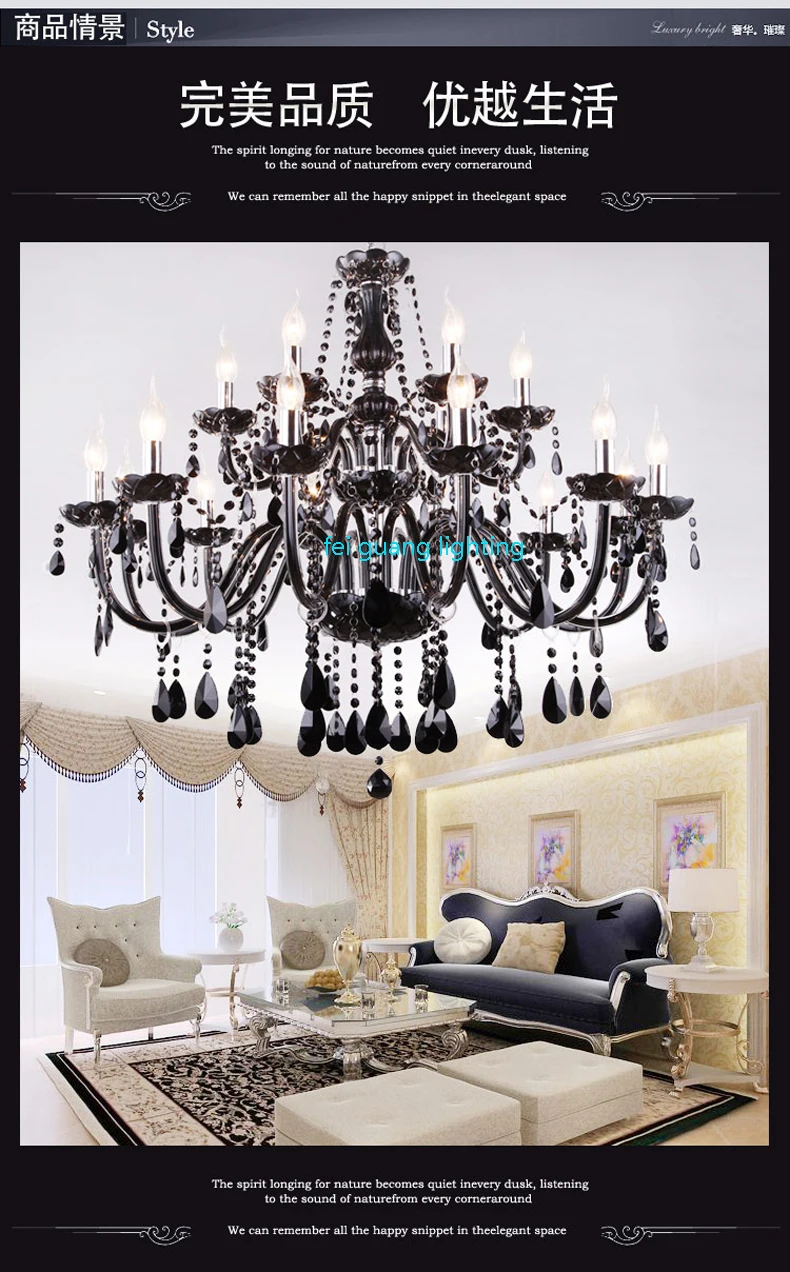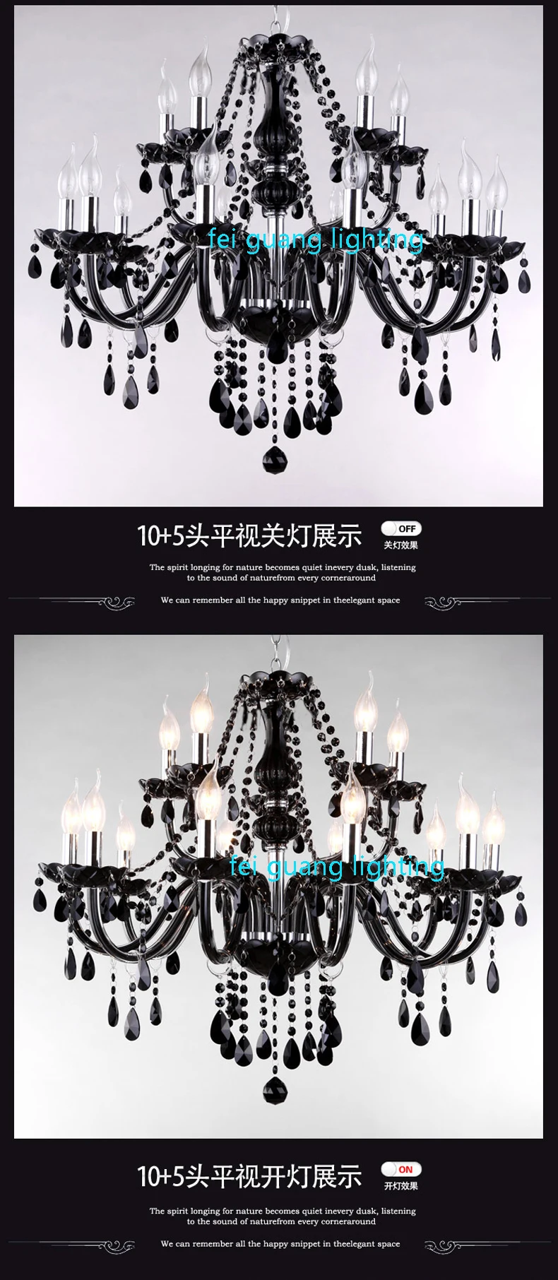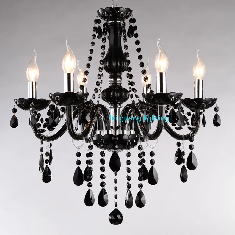 Schwarzer Kristall-Kronleuchter mit Kerzen für Schlafzimmer- und Restaurantbeleuchtung