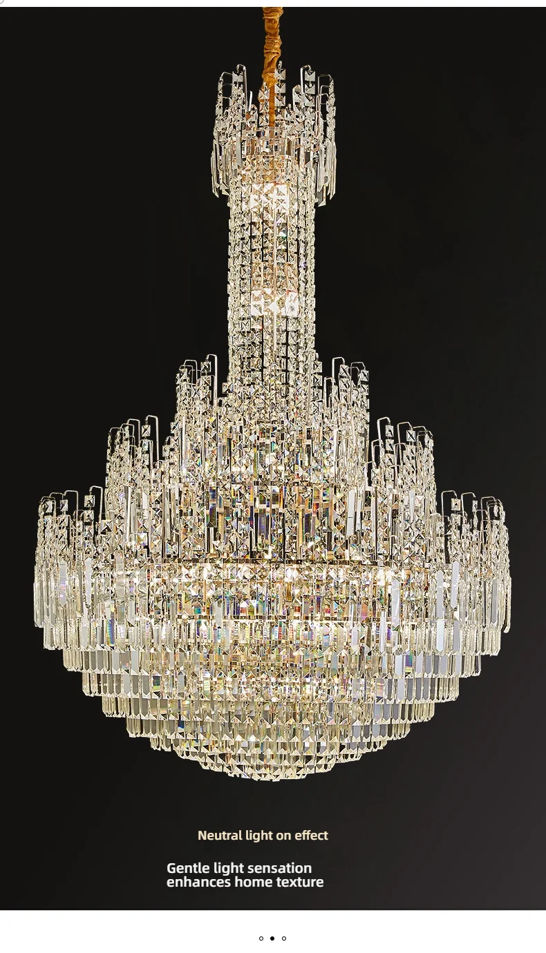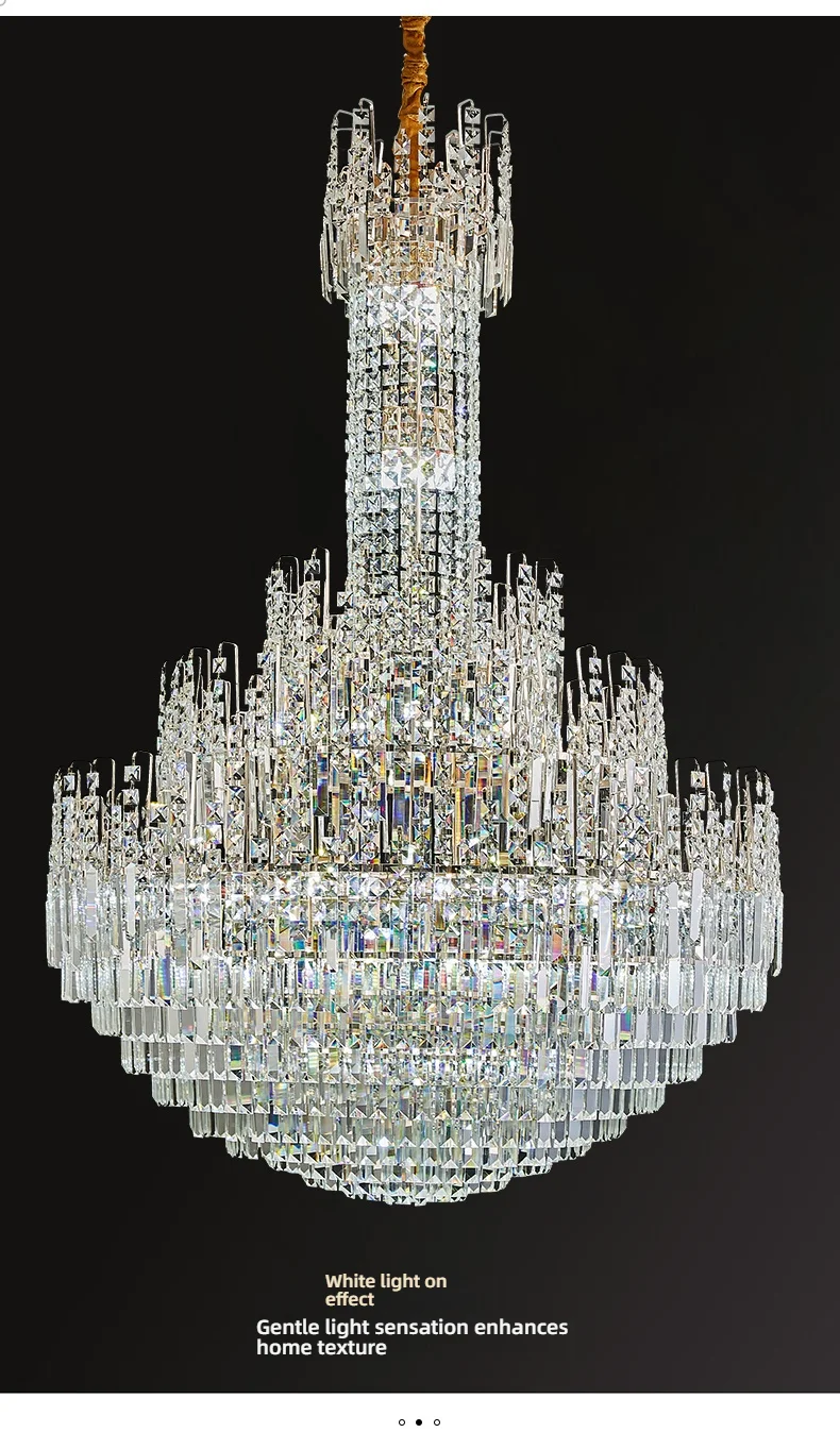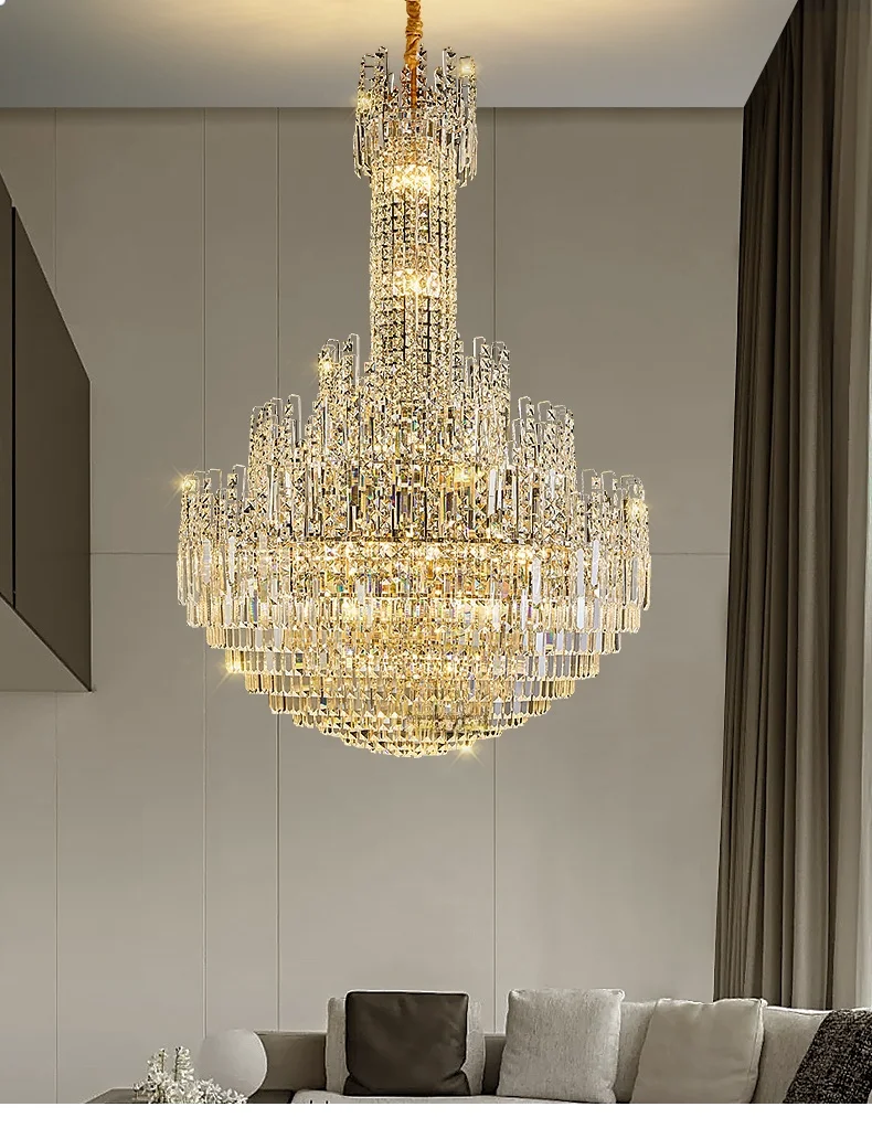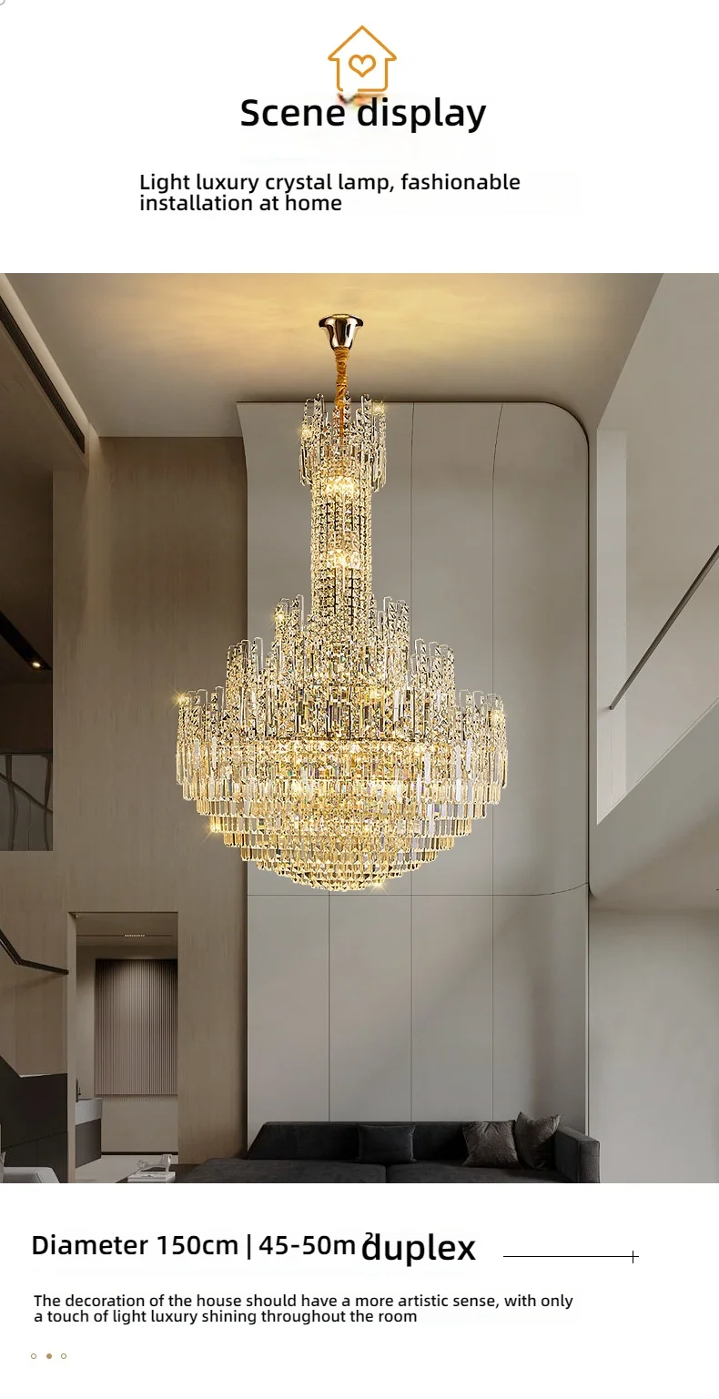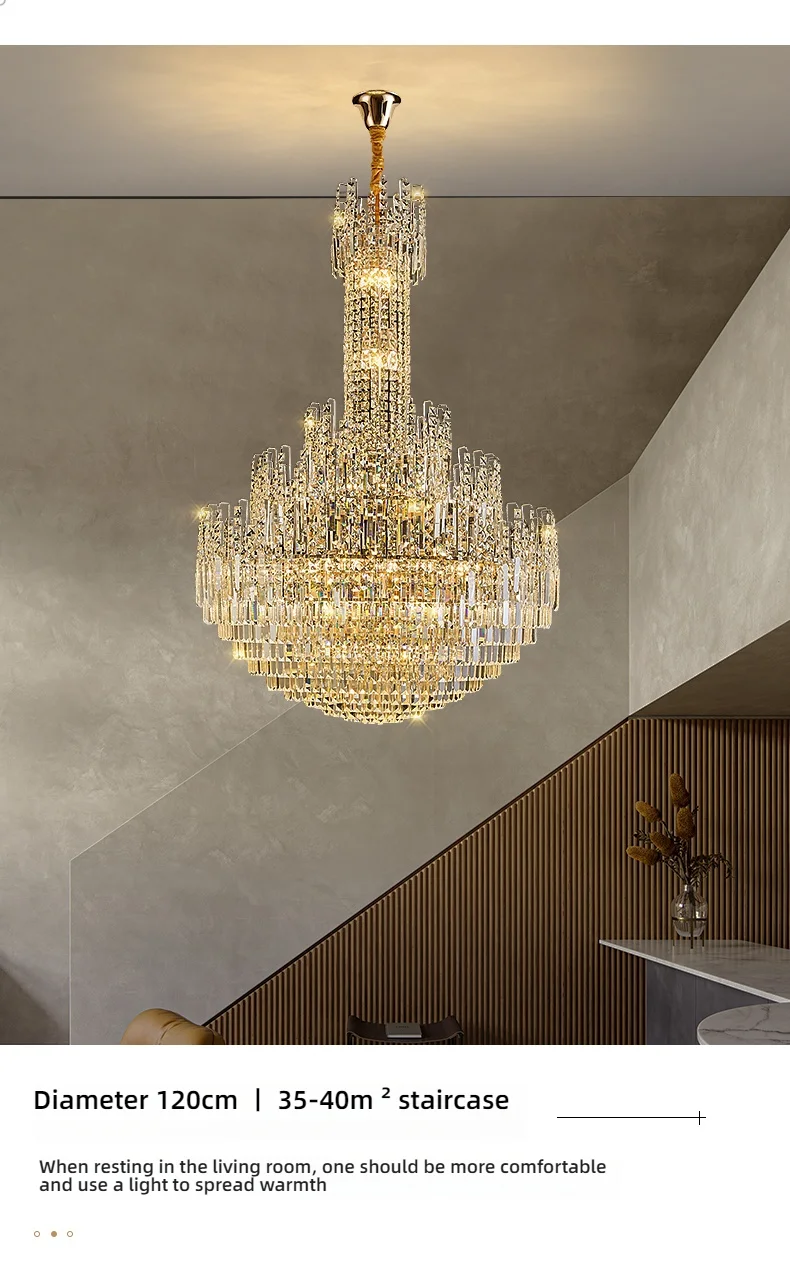 Dieser hohle Kristalllüster wurde für Maisonette-Wohnungen und luxuriöse Interieurs entworfen, in denen die Deckenbeleuchtung zum prachtvollen Blickfang wird. Mit seiner Oberfläche aus gebürstetem Edelstahl und den Kristallverzierungen schafft er ein exklusives Ambiente und fügt sich perfekt in Wendeltreppenhäuser, Hotellobbys, Villenhallen und großzügige Wohnzimmer ein.