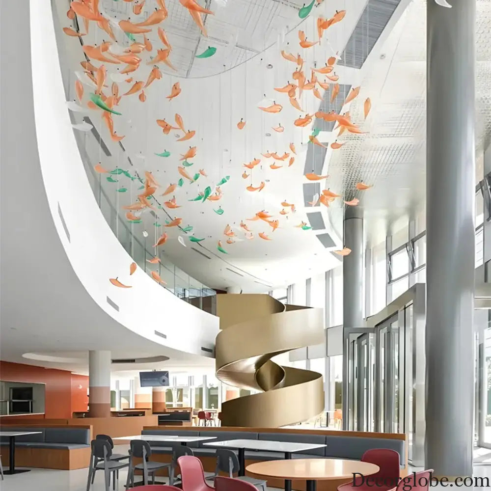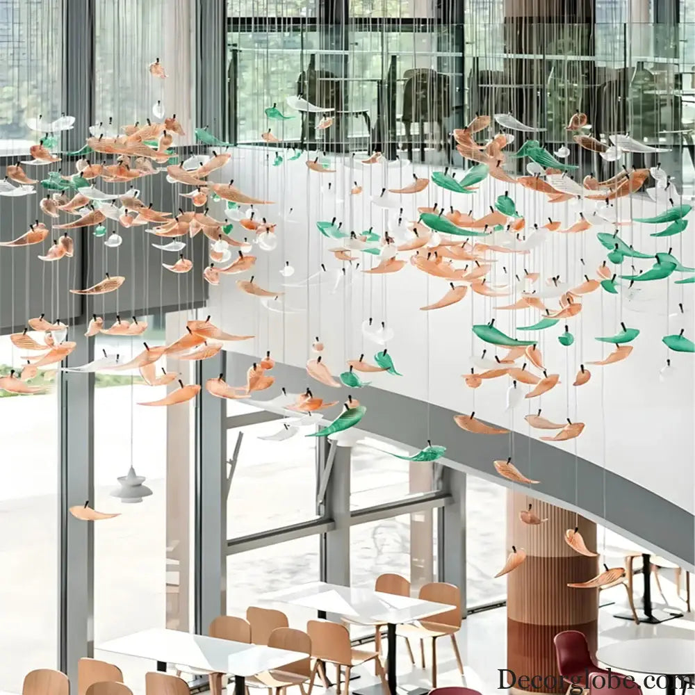 A bold reinterpretation of Art Deco elegance, this Custom Build Fish Shape LED Chandelier is designed for high ceilings in contemporary restaurants, hotels, and statement interiors. The flowing silhouette inspired by aquatic form, combined with vibrant glass elements and refined steel structure, creates dynamic movement and luminous depth. Crafted for large architectural spaces, each chandelier is made to order with fully customizable dimensions, finish, color composition, and lighting configuration to align perfectly with your project vision.