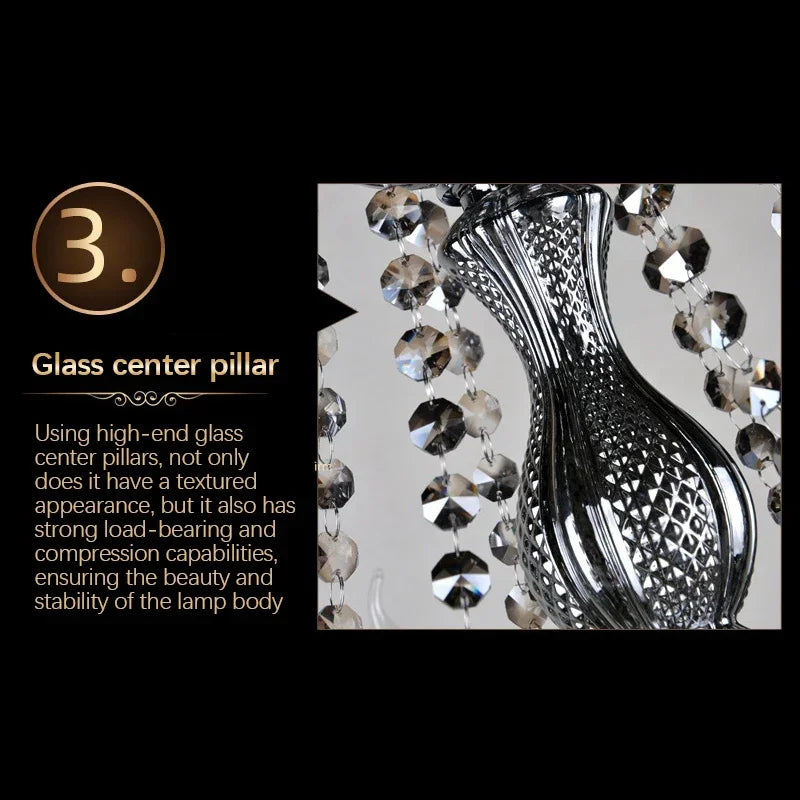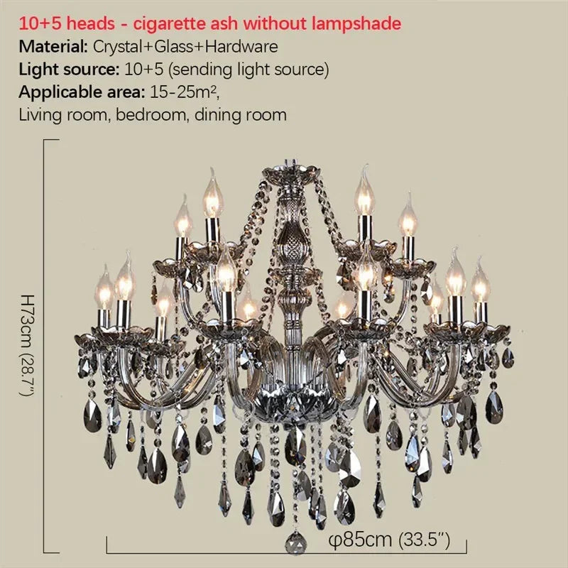 ELARA Europäische Luxus-Kristall-Pendelleuchte, rauchgrau, Wohnzimmer, Restaurant, Schlafzimmer, Villa, Hotel, Western-Restaurant, Kronleuchter