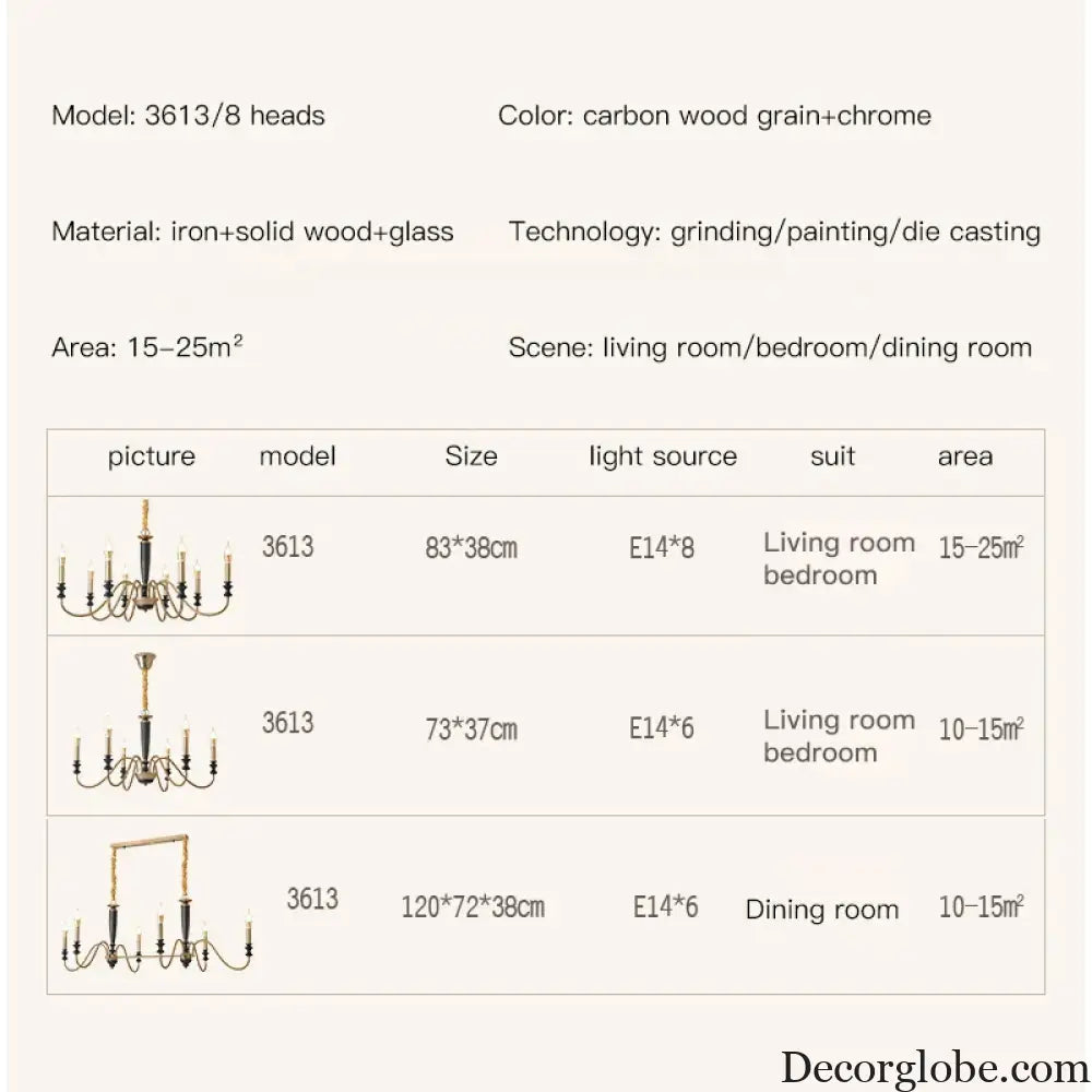 This Nordic-style chandelier features a polished iron body with LED candle-style bulbs, designed to bring modern elegance to living rooms, foyers, bedrooms, kitchens, or dining areas. Its semi-flush mount design provides functional illumination while adding a vintage-inspired decorative accent. Perfect for residential or boutique interiors seeking a contemporary yet timeless look.