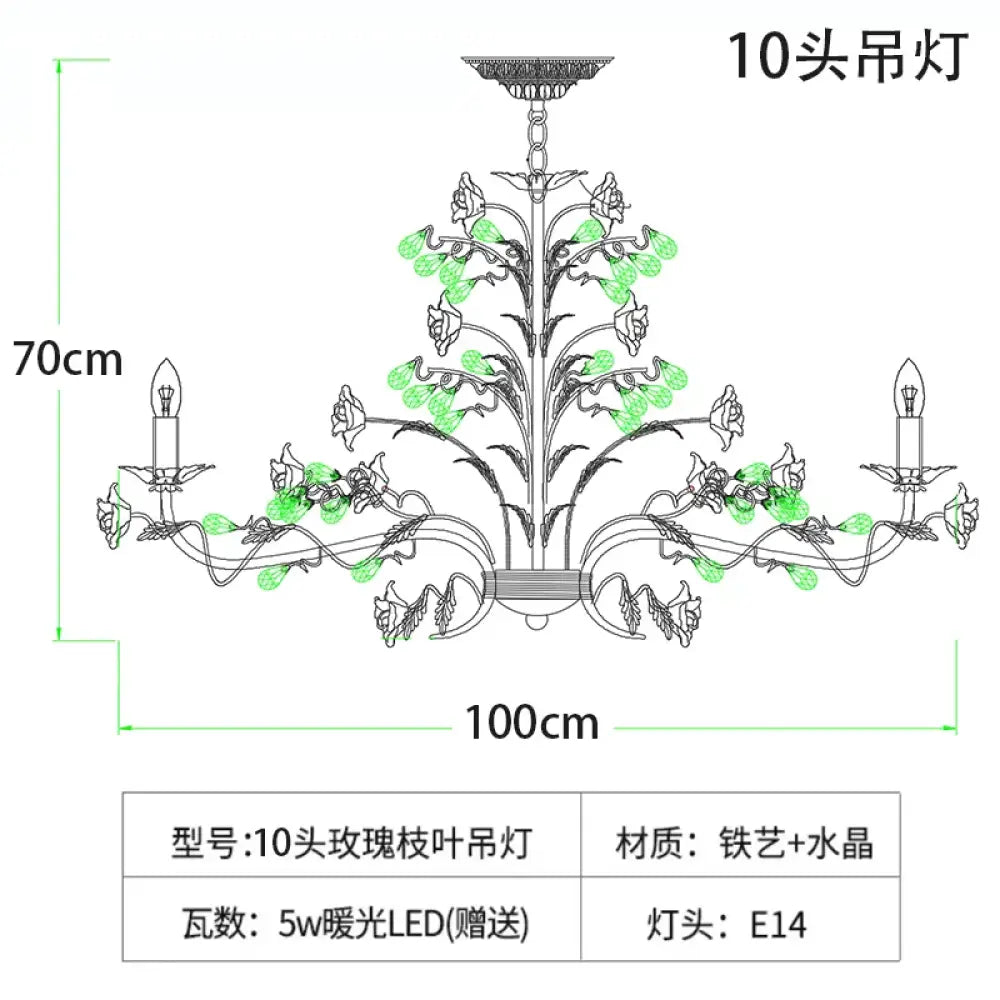 ROSELYN French Vintage Rose Pendant Lamp Pink 10 heads Chandelier